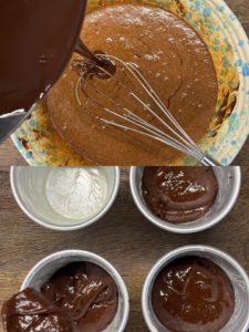 Przygotowujemy kokilki na fondant, smarujemy dokładnie masłem i opcjonalnie lekko oprószamy mąką, aby fondant nie przywarł. Przelewamy masę {u mnie około 95-100 g masy} wypełniając foremki.